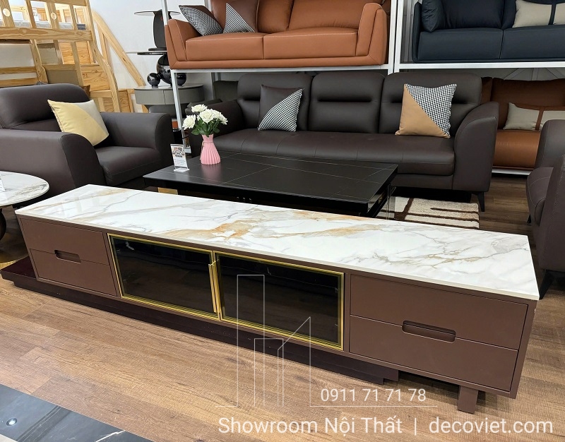Với kiểu dáng mới nhất thị trường, Kệ Tivi Hiện Đại 51T được thiết kế rất hiện đại, với các đường nét góc cạnh sắc sảo và thanh thoát, mang lại cảm giác tinh tế và nhẹ nhàng cho không gian. Kệ tivi nhập khẩu mặt đá còn được trang bị không gian lưu trữ rộng rãi, những ngăn kéo được bố trí hợp lý, khả năng kéo dài linh hoạt, tạo sự thuận tiện khi sử dụng và giúp phòng khách luôn giữ được vẻ sạch sẽ, tinh tế.