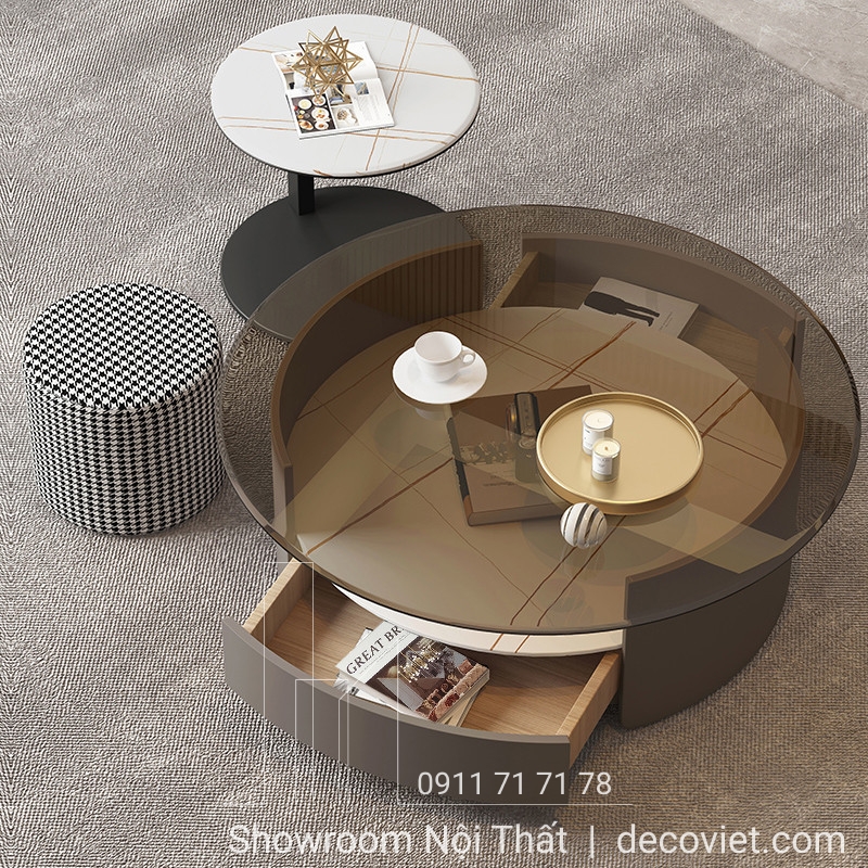 Trong phòng khách, kệ tivi thường đi kèm với bàn trà đẹp. Hai món đồ nội thất này luôn cần có sự đồng bộ về kiểu dáng, màu sắc, vân đá để tạo nên vẻ đẹp hài hòa, sang trọng, tăng tính thẩm mỹ cho không gian. Những mẫu kệ tivi mặt đá nhập khẩu thường có bộ bàn trà mặt đá đi kèm, sẽ tạo được ấn tượng mạnh khi kết hợp trong phòng khách nhà bạn.
