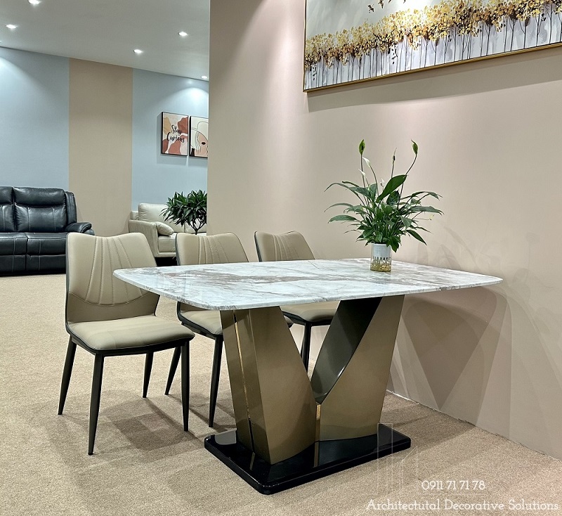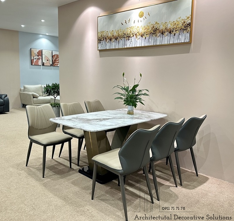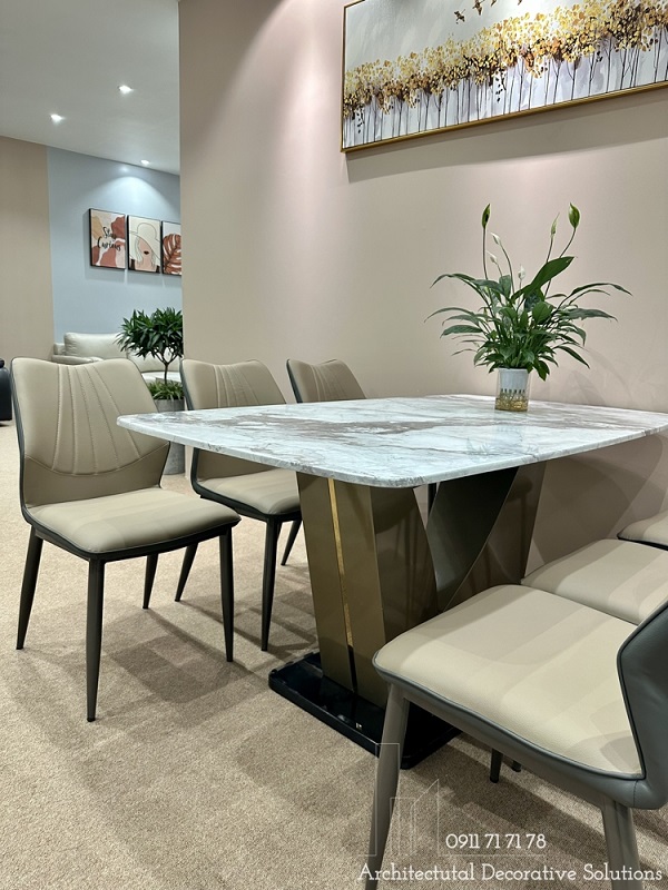 Là một trong những mẫu bàn ăn đẹp được yêu thích nhất tại DecoViet, Bàn Ăn Mặt Đá dễ dàng kết hợp hài hòa với các món đồ nội thất trong phòng như thảm trải sàn, ghế ăn, tủ trang trí. Ngoài ra, dáng bàn ăn này còn có thể kết hợp với mặt bàn đá giúp không gian thêm sang trọng và tinh tế hơn.