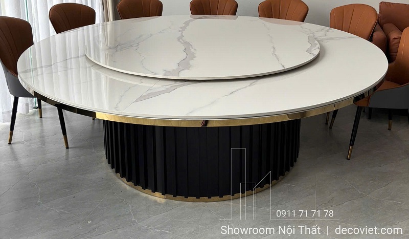 Nếu bạn đang tìm kiếm một bộ bàn ăn tròn hội tụ đủ ba yếu tố: sang trọng trong thiết kế, tiện ích trong sử dụng và bền đẹp theo thời gian, thì Bàn Ăn Tròn 16 Người Cao Cấp 2773S của DecoViet là lựa chọn không thể bỏ qua. Từng bữa cơm, từng tiếng cười và từng câu chuyện được sẻ chia quanh chiếc bàn ăn cao cấp này sẽ trở thành kỷ niệm đáng quý, đồng hành cùng gia chủ trong suốt hành trình xây dựng tổ ấm.