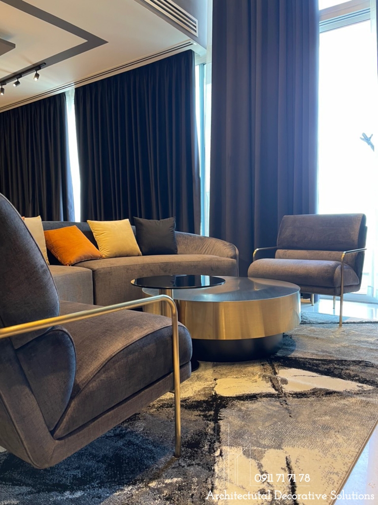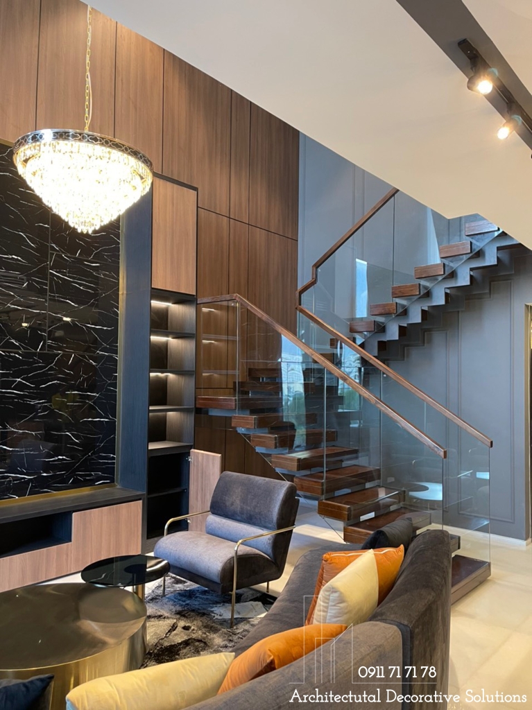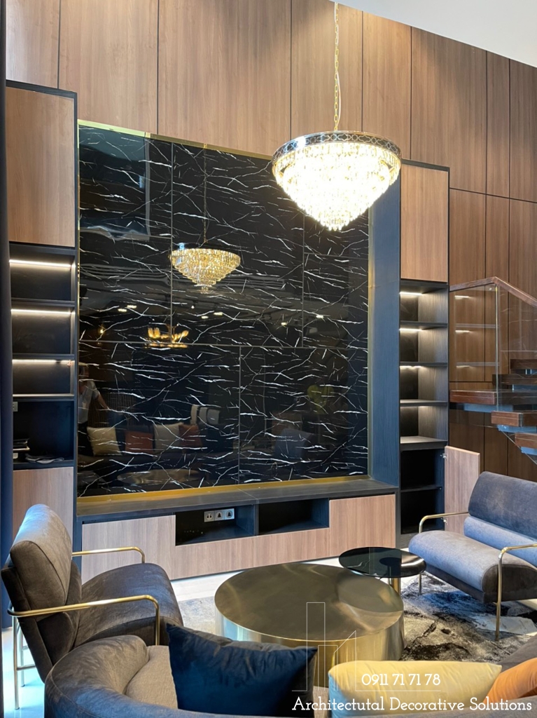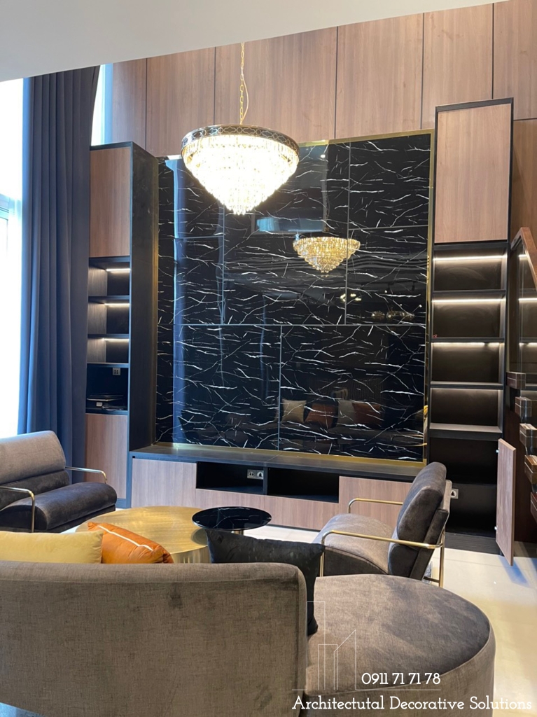 Căn hộ mang phong cách hiện đại, sang trọng thường không làm theo lối cân đối, đối xứng mà được trang trí theo dáng dấp cách tân, đường nét khỏe khoắn, tự do. Thi công nội thất phòng khách căn hộ cao cấp được dùng nhiều mảng, khối, đường nét rõ ràng mang tính hình học.