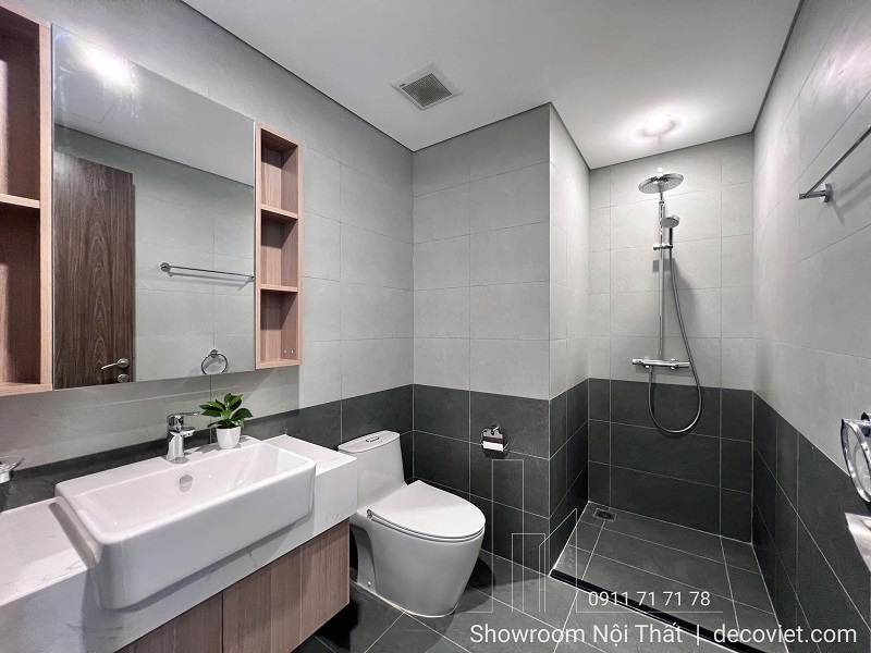 Không gian phòng vệ sinh tuy nhỏ nhưng là nơi thể hiện rõ nhất sự tinh tế trong cách bố trí và chất lượng thi công. Với căn hộ này, DecoViet đã tạo nên một phòng vệ sinh vừa hiện đại, vừa tiện nghi, đảm bảo cả yếu tố thẩm mỹ lẫn công năng sử dụng hàng ngày.