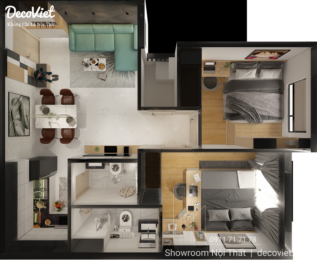 Thiết kế căn hộ chung cư 2 phòng ngủ tối ưu hóa diện tích là xu hướng thiết kế nội thất phổ biến cho không gian sống hiện đại. Nếu bạn bạn muốn ngôi nhà của mình cũng mang một diện mạo mới lạ và sang trọng ấm cúng như là đã ưng ý mẫu Thiết Kế Căn Hộ Chung Cư 2 Phòng Ngủ Tối Ưu Không Gian của DecoViet trên đây, thì còn chần chừ gì nữa mà không liên hệ ngay với DecoViet để được tư vấn và hỗ trợ sớm nhất.