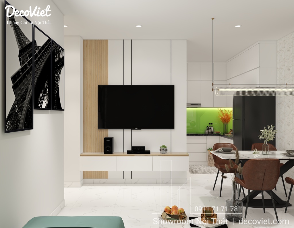 Căn nhà là tổ ấm của mọi gia đình và hầu hết chúng ta đều muốn sống trong một khônh gian rộng rãi, thoáng mát với đầy đủ nội thất tiện nghi. Nếu gia đình bạn sở hữu một căn hộ chung cư 2 phòng ngủ với diện tích khá khiêm tốn, thì việc bố trí nội thất sao cho gọn gàng, thẩm mỹ, đáp ứng đủ công năng là điều không hề dễ dàng. Để giúp bạn mở rộng không gian cho căn hộ của mình, mời bạn cùng DecoViet tham khảo mẫu Thiết Kế Căn Hộ Chung Cư 2 Phòng Ngủ Tối Ưu Không Gian mà chúng tôi vừa thực hiện! Mẫu thiết kế và thi công mang đến cảm giác thoải mái, thoáng đãng cũng với phong cách hiện đại và sang trọng bậc nhất!