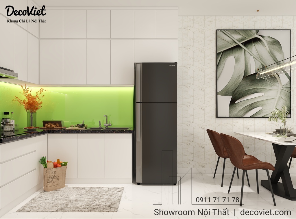 Phòng bếp với diện tích khá khiêm tốn nhưng được thiết kế vô cùng sang trọng và còn có nhiều thiết bị, phụ kiện thông minh. Đầu tư một khu vực nấu nướng đẹp không chỉ giúp phục vụ cho nhu cầu nấu nướng, ăn uống mà còn thể hiện sự quan tâm, sum họp, quây quần của gia đình.