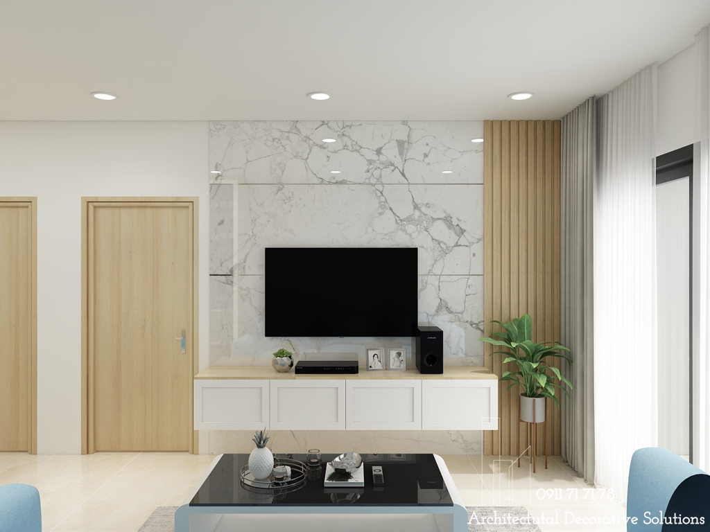 Thiết kế phòng khách đơn giản nhưng với sự phối kết hợp đồ trang trí nội thất thì căn phòng sẽ trở nên sáng đẹp hơn. Chúng tôi hướng đến các thiết kế thông minh tiện ích như kệ tivi treo tường giúp tiết kiệm không gian hơn.