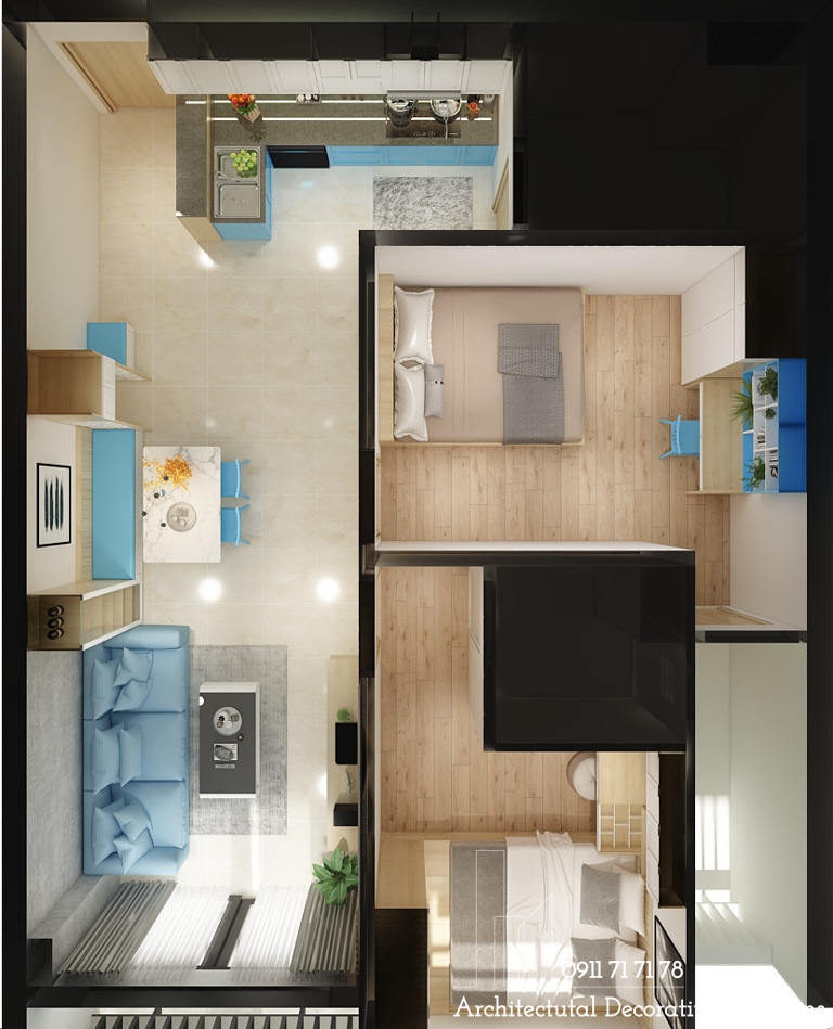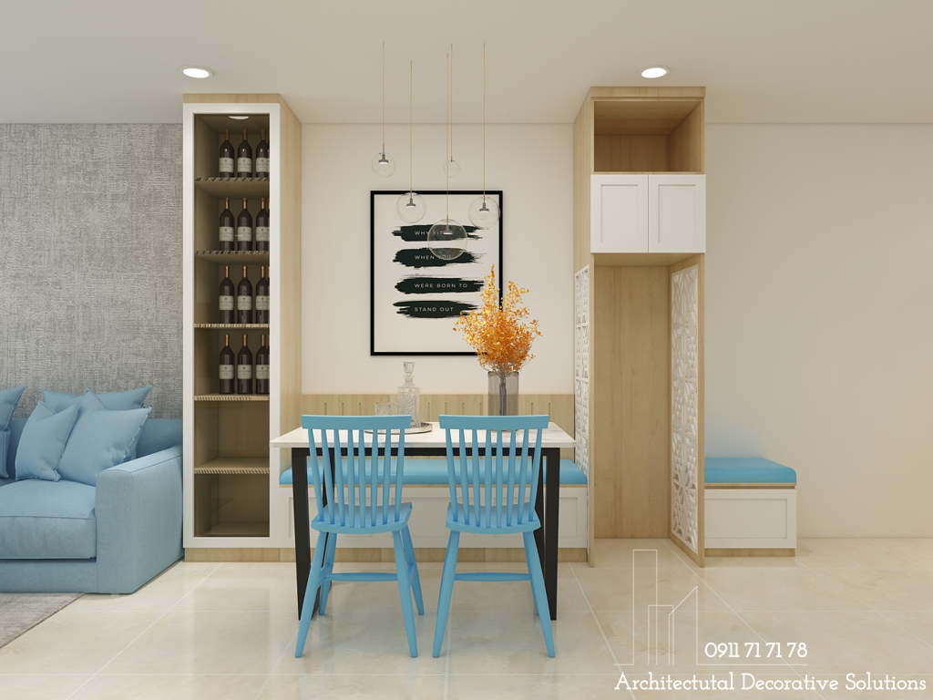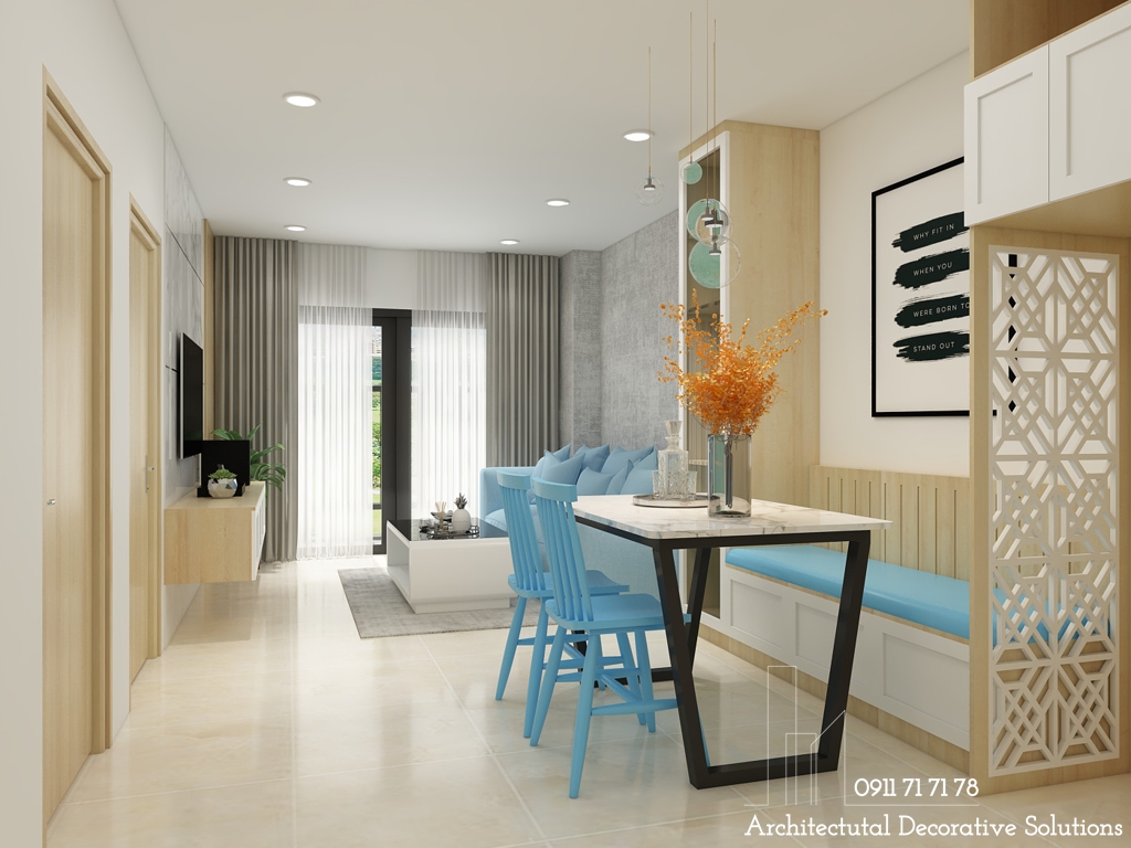 Với những cặp vợ chồng yêu thích phong cách mới lạ cho không gian sống mới đầy đủ tiện nghi với thiết bị hiện đại, nội thất gỗ công nghiệp cao cấp phù hợp với tài chính thì mẫu Thiết kế nội thất căn hộ 2 phòng ngủ đẹp trẻ trung hiện đại là lựa chọn vô cùng hoàn hảo. Nội thất gam màu xanh dương sẽ là lựa chọn tuyệt vời đối với những ai mong muốn căn hộ của mình trở nên mát mẻ và yên bình.