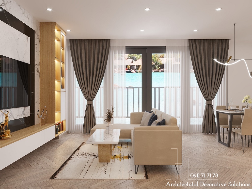 Một không gian sống hiện đại và hoàn mỹ được gói trọn trong thiết kế nội thất căn hộ Aria Vũng Tàu. Không gian căn hộ lấy tông màu trung tính, không nổi bất làm chủ đạo phối hợp hài hòa cùng sắc màu tự nhiên của gỗ gợi lên nét tinh tế cho không gian.