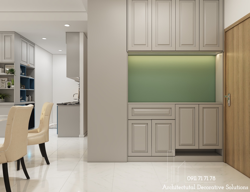 Tủ lưu trữ kết hợp tủ giày ở cửa ra vào giúp tiết kiệm tối đa không gian lưu trữ. Đồng thời mang lại sự tiện nghi và hiện đại cho tổng thể căn hộ.