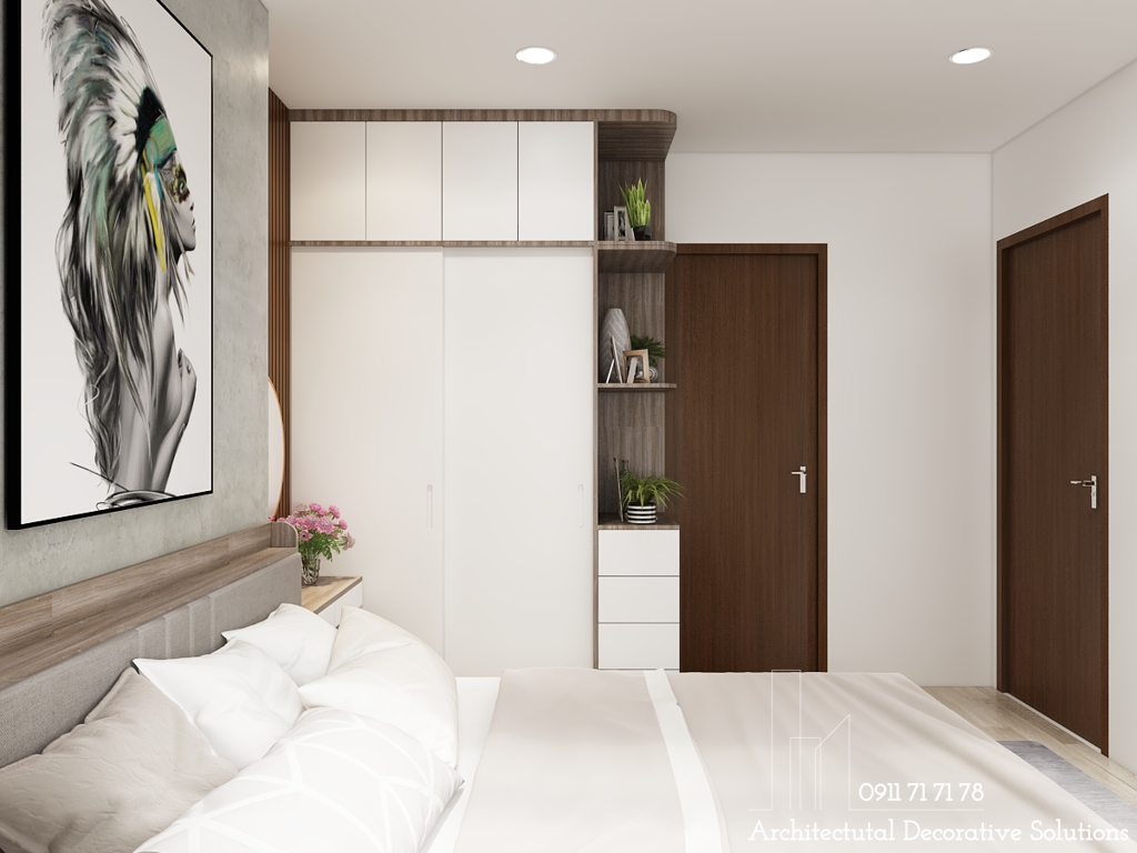 DecoViet đã tiếp tục hoàn thành thiết kế nội thất căn hộ chung cư Citi Esto có diện tích vừa phải theo phong cách hiện đại, tiện nghi, đơn giản nhưng không kém phần sang trọng và tinh tế. Tuy có diện tích khiêm tốn nhưng Thiết kế nội thất chung cư 2 phòng ngủ Citi Esto đẹp tiện nghi có không gian sống rộng rãi và thoáng mát, gia chủ có thể thoải mái, thư giãn tận hưởng cuộc sống ngay trong chính căn hộ của mình. Hai tone màu chủ đạo trong dự án thiết kế này là màu trắng và màu nâu của gỗ, sự kết hợp đối lập này tạo nên một không gian sống vừa hiện đại, năng động nhưng không kém phần nhẹ nhàng và ấm áp.