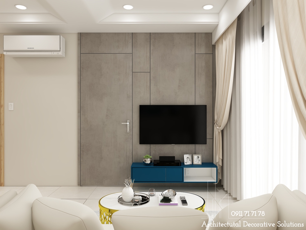 Điểm nhấn đặc biệt với kệ tivi màu xanh mát mắt, mang đến vẻ đẹp hiện đại và năng động.