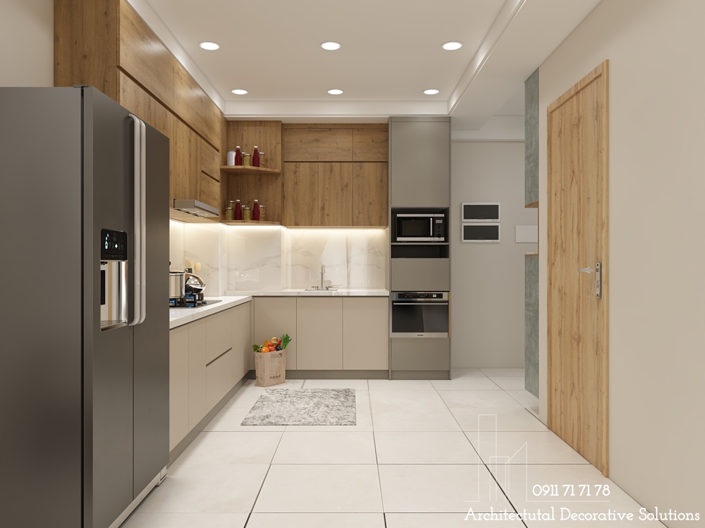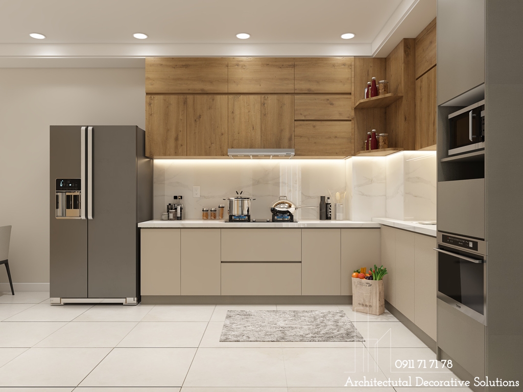 Thiết kế khu vực bếp với đầy đủ công năng, đẹp hiện đại và tiện nghi