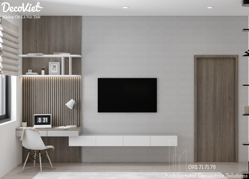 DECOVIET là đơn vị đi đầu trong lĩnh vực thiết kế kiến trúc và nội thất, xây dựng. Trong đó phải kể đến Mẫu Thiết Kế Nội Thất Nhà Đẹp 1 Phòng Ngủ Tại Bình Định. DECOVIET luôn mang đến những dự án thiết kế nhà đẹp sắc sảo, chân thực và chất lượng nhất cho khách hàng. Nếu bạn muốn ngôi nhà của mình cũng mang một diện mạo mới lạ độc đáo thì hãy gọi ngay cho chúng tôi để được tư vấn nhiệt tình giúp bạn có không gian sống tiện nghi và hiện đại nhất.