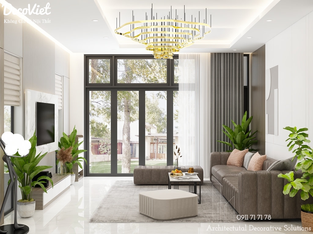 Cửa kính lớn giúp không gian có nhiều ánh sáng tự nhiên, mang đến sự rộng rãi, thoáng mát cho không gian sinh hoạt.