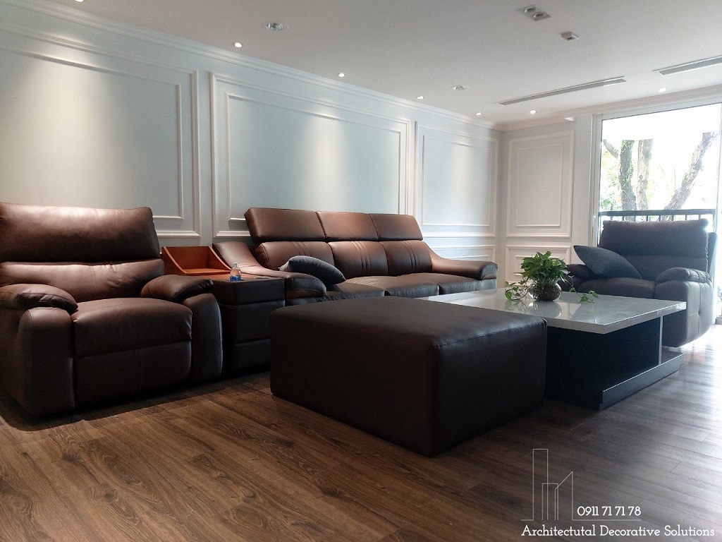 Thi công nội thất biệt thự mang phong cách hiện đại thường không làm theo lối cân đối, đối xứng mà được trang trí theo dáng dấp cách tân, đường nét khỏe khoắn, tự do. Nội thất phòng khách được bày trí khéo léo, khoa học, thi công nội thất phòng khách căn hộ cao cấp được dùng nhiều mảng, khối, đường nét rõ ràng mang tính hình học.
