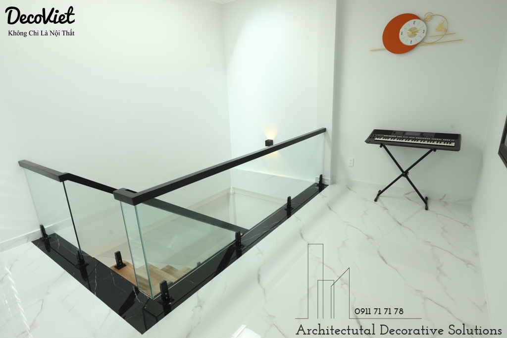 Bên cạnh đó cầu thang kính mang lại sự đột phá về thiết kế thi công giúp cho nội thất căn nhà trở nên hiện đại, thoáng, lấy tối đa được ánh sáng cho khu vực quanh cầu thang.
