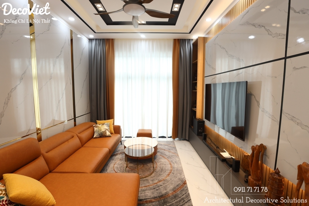 Để khẳng định sự đẳng cấp và gu thẩm mỹ của gia chủ, DecoViet đã phá cách trong sự kết hợp đa dạng những chất liệu cao cấp cho toàn bộ không gian nội thất nhà phố một cách tinh tế, sang trọng mang đến giá trị thẩm mỹ cực kỳ cao cho tổ ấm. Mẫu Thi Công Hoàn Thiện Nội Thất Nhà Phố 3 PN Hiện Đại Tại Gia Lai vừa hoàn thành tạo cho gia đình một không gian sống nghỉ ngơi, thoải mái mà không gò bó tạo cảm giác thân thuộc, gần gũi.