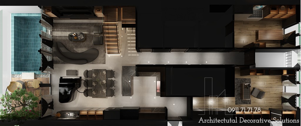 Sơ đồ mặt bằng bố trí nội thất tầng trệt