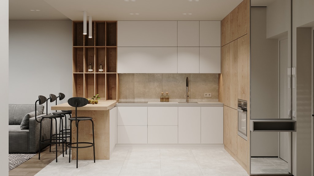 Phong cách : Tủ bếp gỗ công nghiệp mang đến không gian bếp vô cùng hiện đại, tươi mới và trẻ trung.