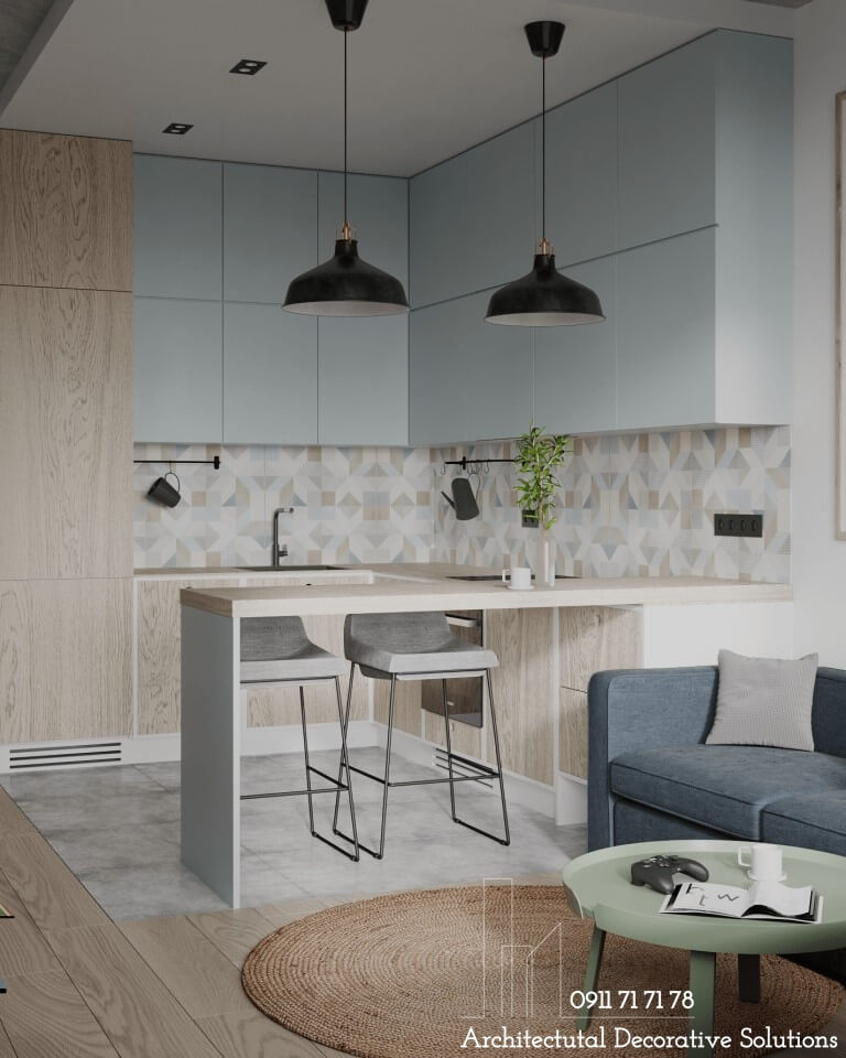 Màu sắc: của tủ và tường phải hài hòa và cân đối, tạo được điểm nhấn của tủ, thông thường màu tường và màu tủ là hai màu tương phản nhau, màu tường phải làm nền nổi bật cho tủ bếp.