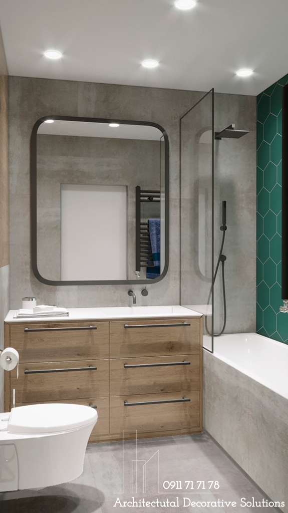 Đối với phòng tắm, bạn không cần phải thiết kế cầu kì, đơn giản, sáng, sạch sẽ giúp cho bạn dễ chịu hơn sau mỗi lần vào phòng tắm.