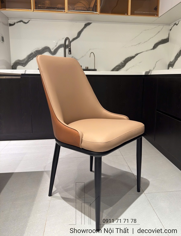 Ghế ăn bọc da là mẫu ghế đang được nhiều gia đình chọn vì thiết kế gọn gàng, tinh tế và cực kỳ dễ phối với nhiều kiểu bàn ăn khác nhau. Ghế Ăn Bọc Da Giá Rẻ 580S sở hữu form ghế bo cong mềm mại, phần lưng ôm nhẹ và mặt ngồi rộng rãi giúp ngồi lâu vẫn thoải mái. Toàn bộ phần nệm ngồi và lưng ghế ăn được bọc da phối hai màu sang trọng, dễ lau chùi, rất phù hợp với không gian bếp – phòng ăn sử dụng mỗi ngày. Chân sắt sơn tĩnh điện chắc chắn, chịu lực tốt và chống gỉ, giúp ghế bền đẹp theo thời gian, phù hợp cho gia đình có trẻ nhỏ, người lớn tuổi hoặc những không gian cần ghế ngồi chắc chắn và tiện dụng.