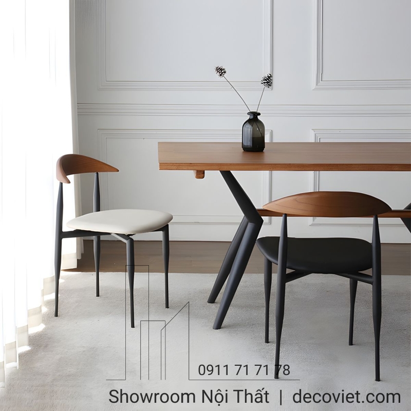 Giá thành và độ bền sản phẩm hầu như được quyết định bởi vật liệu làm ghế ăn. Trên thị trường hiện nay có nhiều sự lựa chọn về chất liệu ghế ăn, một trong số đó là chân ghế từ gỗ và chân sắt được bọc lớp đệm và da êm ái. Mỗi vật liệu ghế ăn đều có ưu điểm phù hợp với nhu cầu khác nhau, vậy nên lựa chọn của mỗi người là không giống nhau. Do đó, nếu bạn yêu thích chất liệu ghế ăn nào hãy liên hệ ngay với DecoViet để được chúng tôi tư vấn kiểu dáng ghế ăn phù hợp nhất!