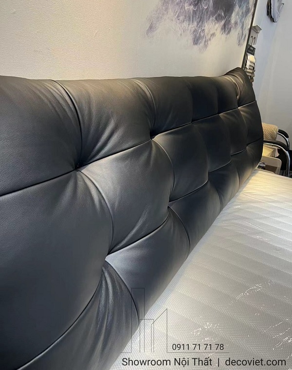 Giường bọc da đẹp sử dụng da bọc chất lượng cao, dễ vệ sinh, chống bám bụi và giữ màu bền đẹp theo thời gian. Khung giường làm từ gỗ MDF đảm bảo độ chắc chắn, giúp bạn yên tâm sử dụng lâu dài. Với tông màu trung tính, giường ngủ đẹp dễ dàng phối hợp với nhiều phong cách nội thất khác nhau – từ căn hộ nhỏ gọn, nhà phố hiện đại đến phòng ngủ rộng rãi trong biệt thự.