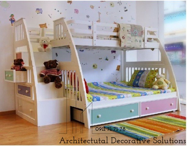 Giường Tầng 445S được thiết kế đẹp với các họa tiết trang trí. Thiết kế tối ưu để tiết kiệm diện tích phòng ngủ, sử dụng cho cả trẻ em và người lớn. Ưu điểm lớn của loại giường này là rộng rãi, dùng cho 2-3 người cả trẻ em và người lớn với 2 giường, tầng trên rộng 1m4, tầng dưới rộng 1m. Phía dưới tầng 1 là các hộc kéo dùng để chứa đồ, cầu thang chắc chắn.