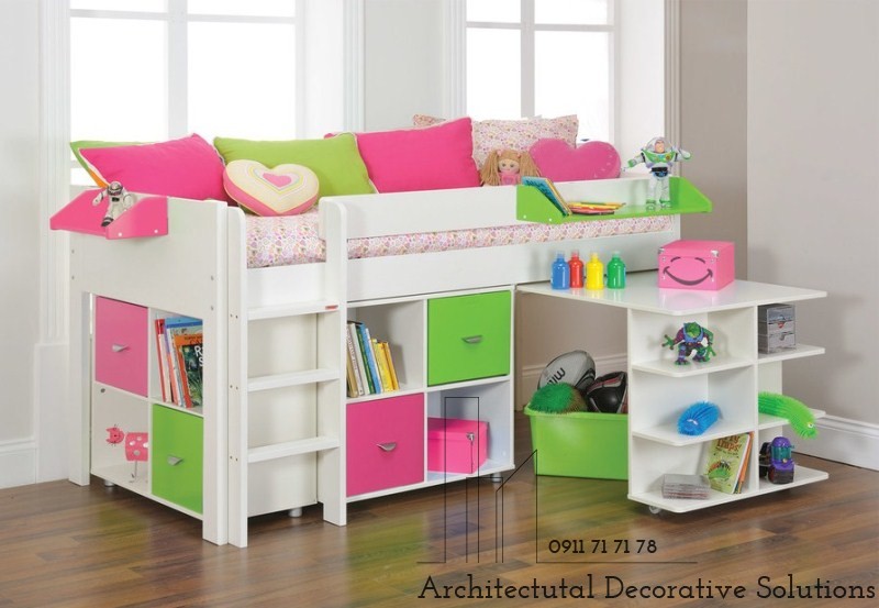 Giường Tầng 455S được thiết kế đẹp với các họa tiết trang trí. Thiết kế tối ưu để tiết kiệm diện tích phòng ngủ, sử dụng cho cả trẻ em và người lớn. Ưu điểm lớn của loại giường này là rộng rãi, dùng cho 2-3 người cả trẻ em và người lớn với 2 giường, tầng trên rộng 1m4, tầng dưới rộng 1m. Phía dưới tầng 1 là các hộc kéo dùng để chứa đồ, cầu thang chắc chắn.
