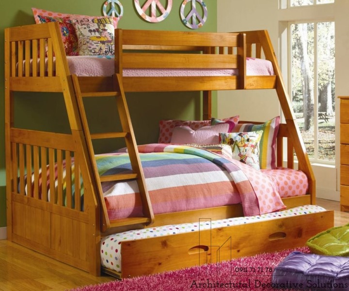 Giường Tầng Cao Cấp 417T – Vàng được thiết kế đẹp với các họa tiết trang trí. Thiết kế tối ưu để tiết kiệm diện tích phòng ngủ, sử dụng cho cả trẻ em và người lớn. Ưu điểm lớn của loại giường này là rộng rãi, dùng cho 2-3 người cả trẻ em và người lớn với 2 giường, tầng trên rộng 1m4, tầng dưới rộng 1m. Phía dưới tầng 1 là các hộc kéo dùng để chứa đồ, cầu thang chắc chắn.