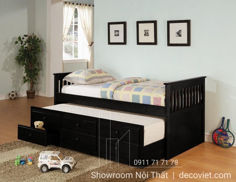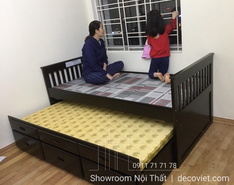 Giường 2 tầng cho bé được sản xuất bằng gỗ thông được nhập khẩu 100% từ New Zealand đã qua xử lý chống cong vênh, mối mọt và chống hút ẩm. Đặc biệt, giường 2 tầng có tầng dưới được trang bị như 1 hộc kéo tiện lợi, bạn có thể thu vào gọn thành 1 giường đơn khi không sử dụng.