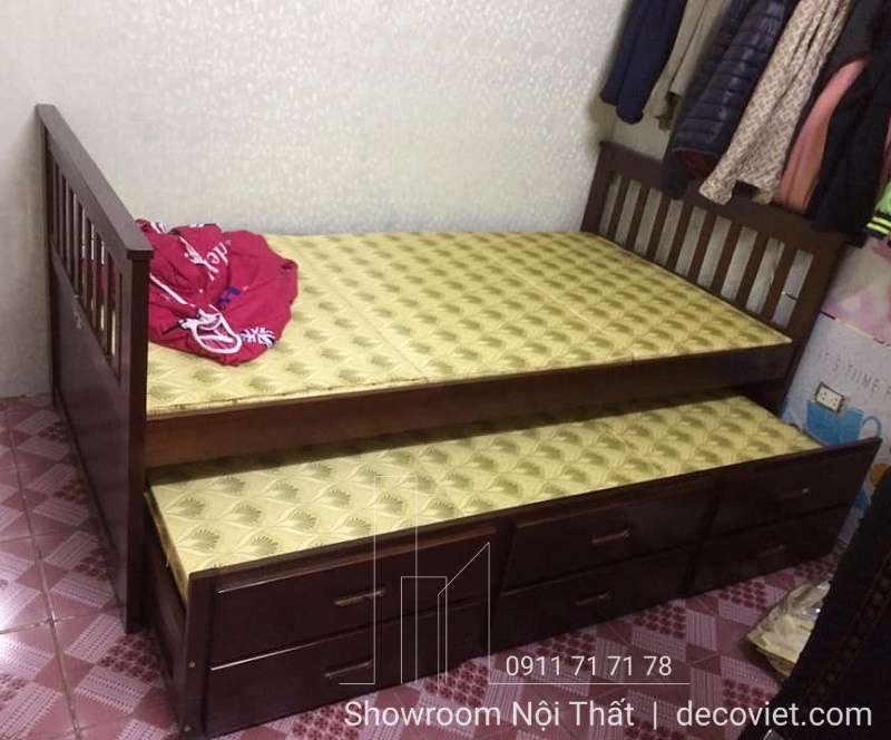Các hộc kéo được bố trí rộng rãi, giúp các con có nhiều không gian lưu trữ vật dụng hơn. Bạn còn chần chừ gì nữa mà không đến ngay Nội thất DecoViet để trải nghiệm những điều tuyệt với nhất của mẫuGiường Tầng Thông Minh 407T – Nâu.