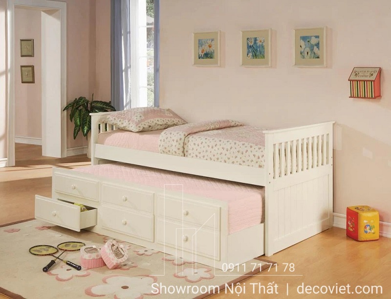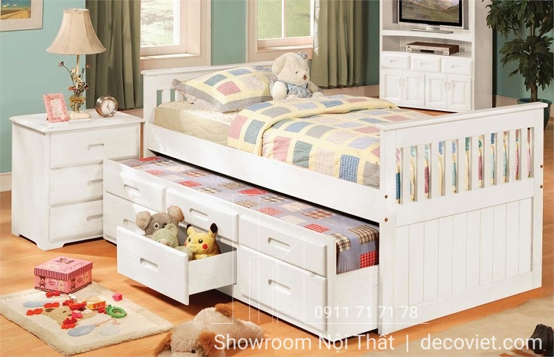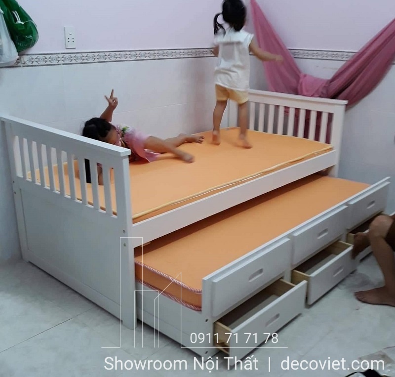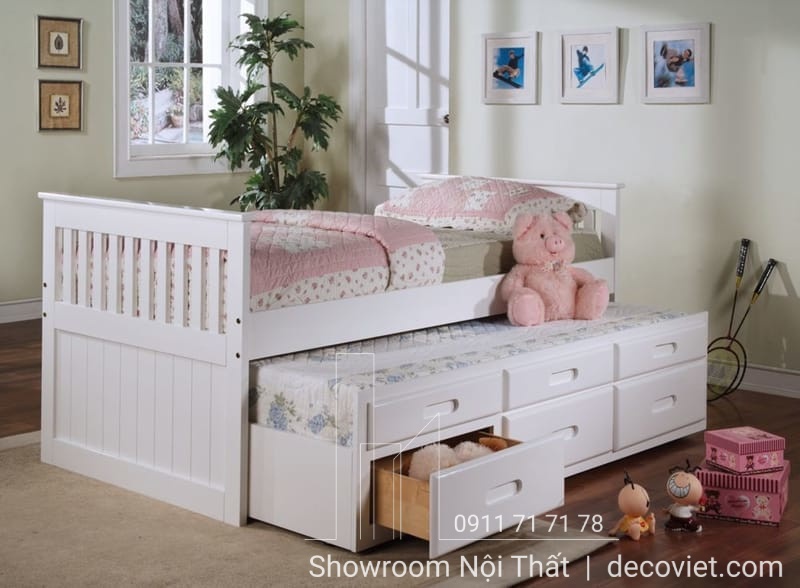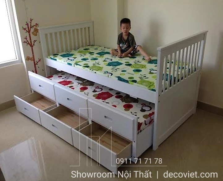 Giường tầng trẻ em là một lựa chọn tuyệt vời cho các bậc phụ huynh muốn tạo cho con mình một không gian độc lập, đảm bảo an toàn với tính thẩm mỹ cao. Giường Tầng Thông Minh 407T là mẫu giường tầng đẹp với kiểu dáng hình hộp 2 tầng độc đáo, giường tầng dưới được tích hợp như một ngăn kéo hiện đại, giúp bạn tiết kiệm diện tích tốt nhất. Ngoài ra, mẫu giường tầng giá rẻ tại DecoViet còn được thiết kế theo tiêu chuẩn xuất khẩu Châu Âu, bạn hoàn toàn có thể yên tâm về chất lượng cũng như độ an toàn của sản phẩm.