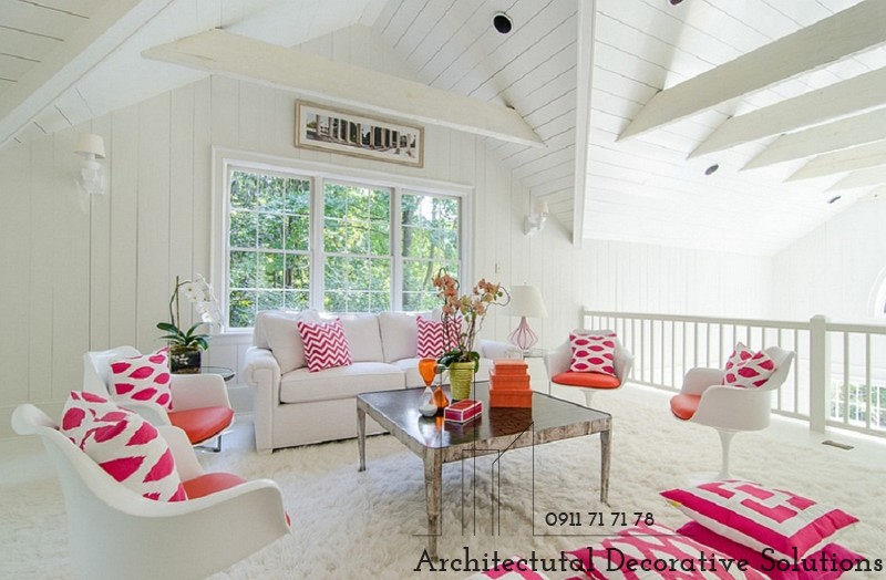 Những chiếc gối tựa mang sắc hồng tươi chắc chắn không thể thiếu trong list đồ trang trí phòng khách.