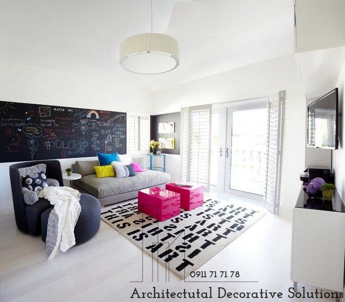 Những chiếc gối tựa đầy màu sắc mang lại vẻ trẻ trung, sinh động cho căn phòng.