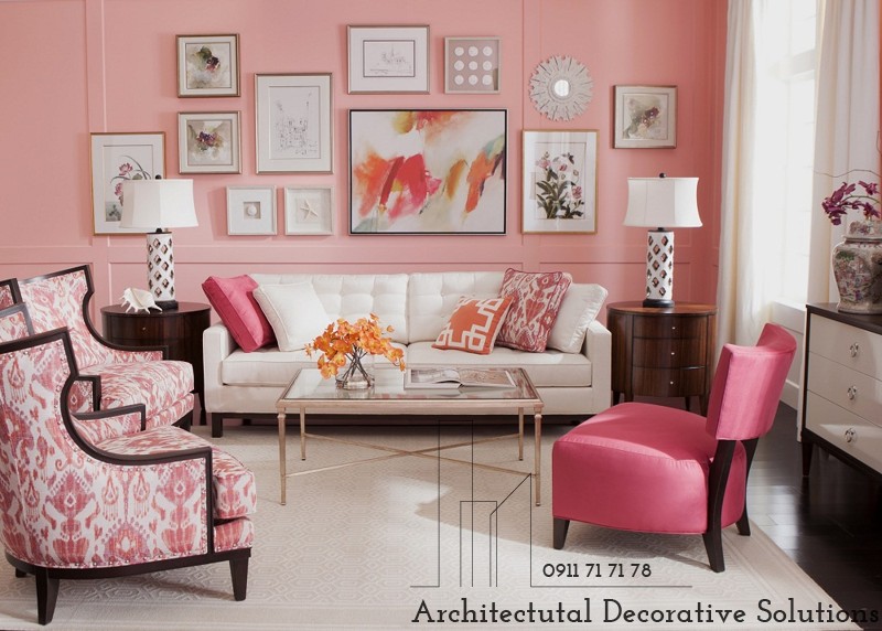 Ngoài ra, bạn cũng có thể lựa chọn tông hồng cho vô vàn món đồ khác trong phòng khách. Một bộ sofa hồng chắc chắn sẽ là điểm nhấn hút mắt không một vị khách nào có thể bỏ qua khi bước vào phòng khách. Những sắc hồng đậm làm tông màu tạo điểm nhấn nổi bật trong căn phòng luôn là lựa chọn thông minh. Bạn có thể dùng chúng với những chiếc gối tựa, đèn cây, rèm cửa hay những bức tranh nghệ thuật…