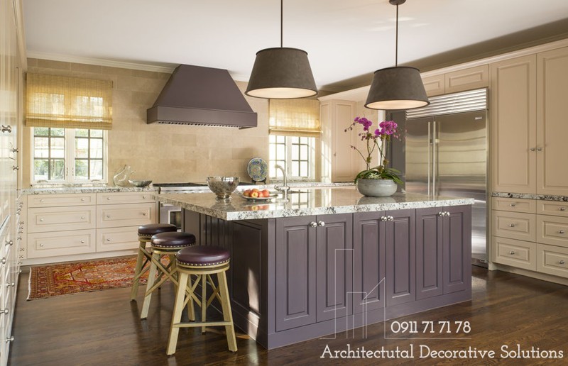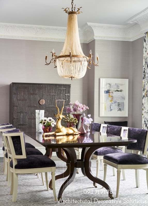 Sắc tím được sử dụng bên trong phòng ăn mà vẫn giữ được nét đẹp hiện đại và thanh lịch.