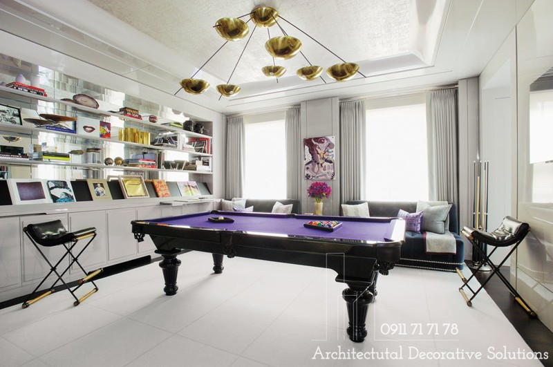 Thiết kế mặt bàn bi-a với sắc tím nổi bật đầy ấn tượng so với mẫu bàn phổ thông bạn vẫn thường thấy.