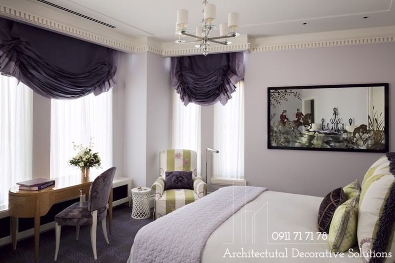 Với cách sử dụng sắc tím để tạo điểm nhấn bạn có thể ứng dụng cho nhiều không gian sinh hoạt khác nhau như phòng khách, phòng ăn hay phòng ngủ.