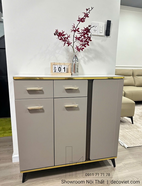 Không chỉ đơn thuần là nơi cất giữ, tủ để giày còn được thiết kế thông minh với mặt tủ có thể tận dụng để đặt túi xách, lọ hoa hay phụ kiện trang trí, góp phần tăng thêm tính thẩm mỹ và sự tiện nghi cho không gian.