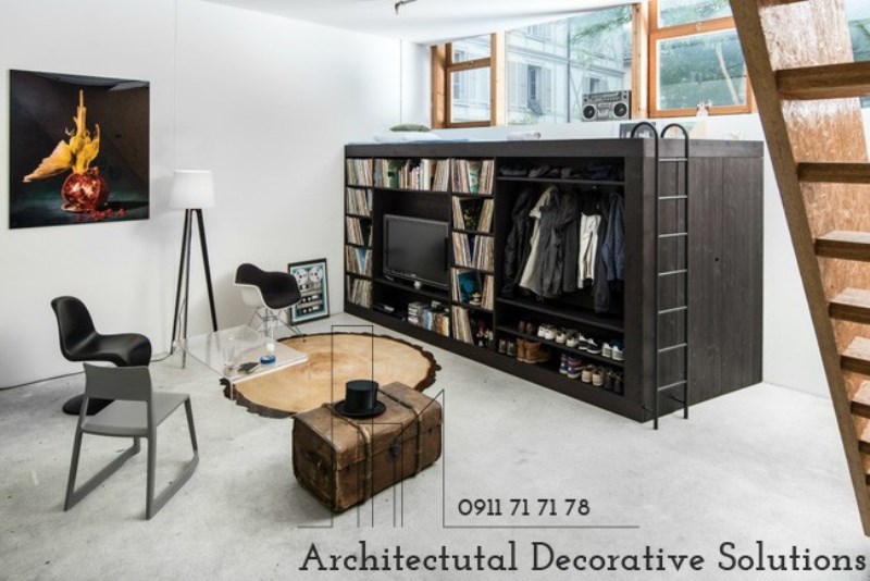 Thiết kế này thậm chí còn tích hợp được thêm cả không gian phòng ngủ, thay đồ với giường, tủ, quần áo và tivi giải trí cho cùng một không gian.