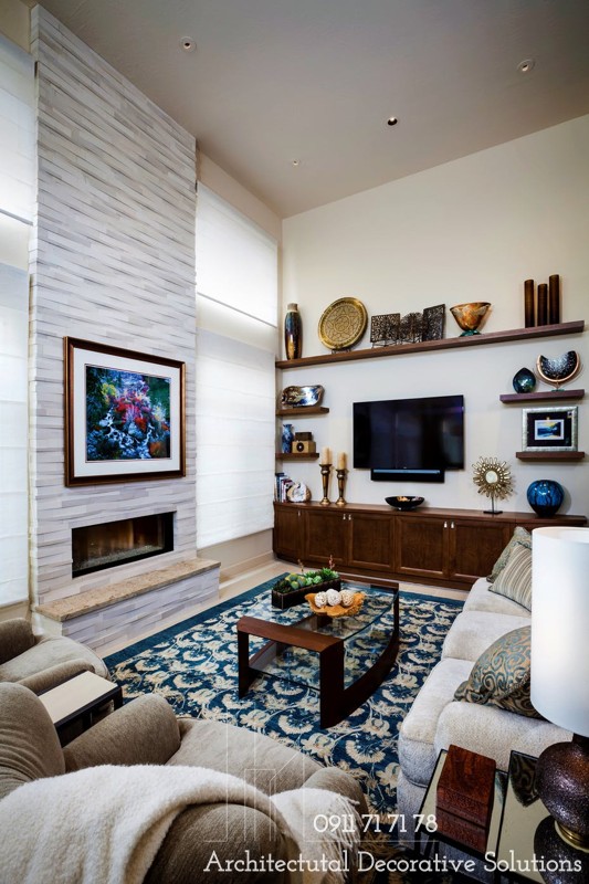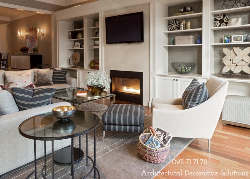 Nhiều gia đình sẽ lựa chọn bổ sung thêm cho phòng khách kệ tivi, giá sách hay tủ rượu… tùy vào nhu cầu sử dụng