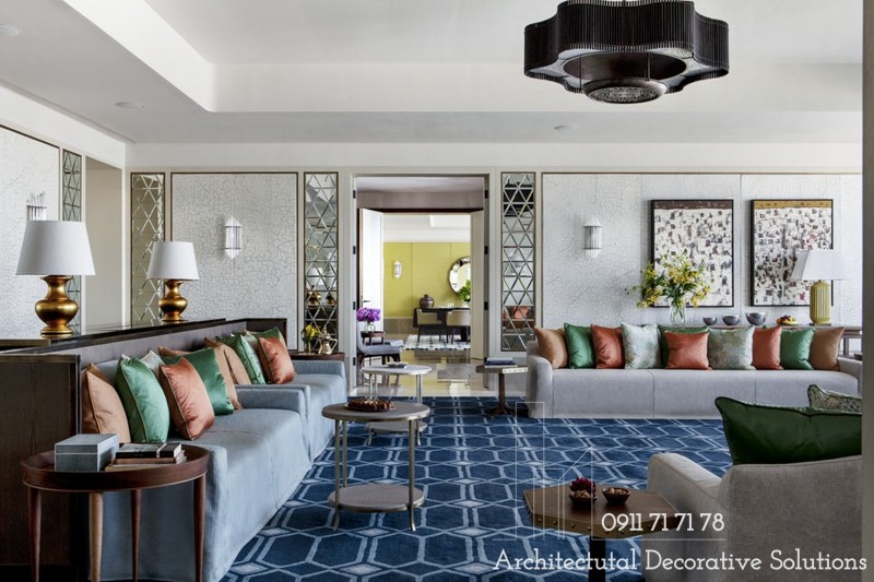 Bạn đừng quên đi những chiếc thảm trải sàn của phòng khách. Thảm trải sàn giúp làm nổi bật bộ bàn ghế tại trung tâm căn phòng, đồng thời mang lại cảm giác ấm cúng hơn.
