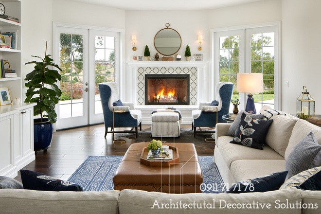 Căn phòng khách thiết kế theo phong cách truyền thống nhưng lại được bày trí với những món đồ nội thất hiện đại là một ví dụ điển hình để bạn học tập.