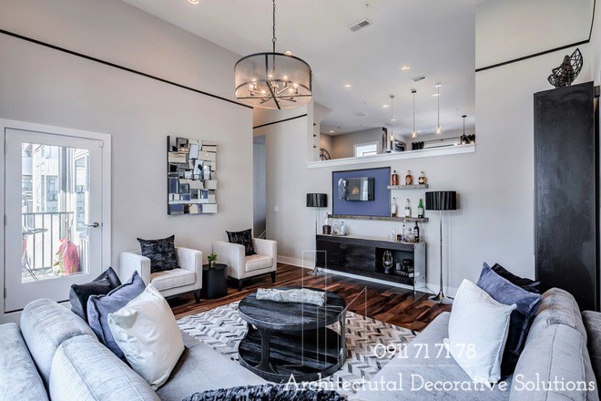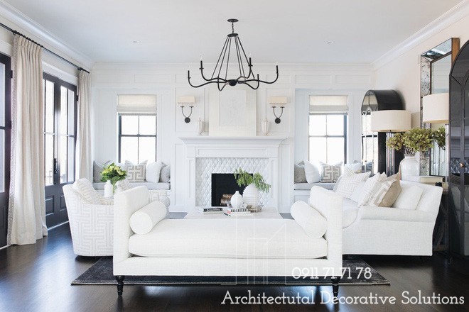 Cặp màu sắc tương phản đen – trắng rất phù hợp với những căn phòng khách có sự kết hợp giữa cổ điển và hiện đại.