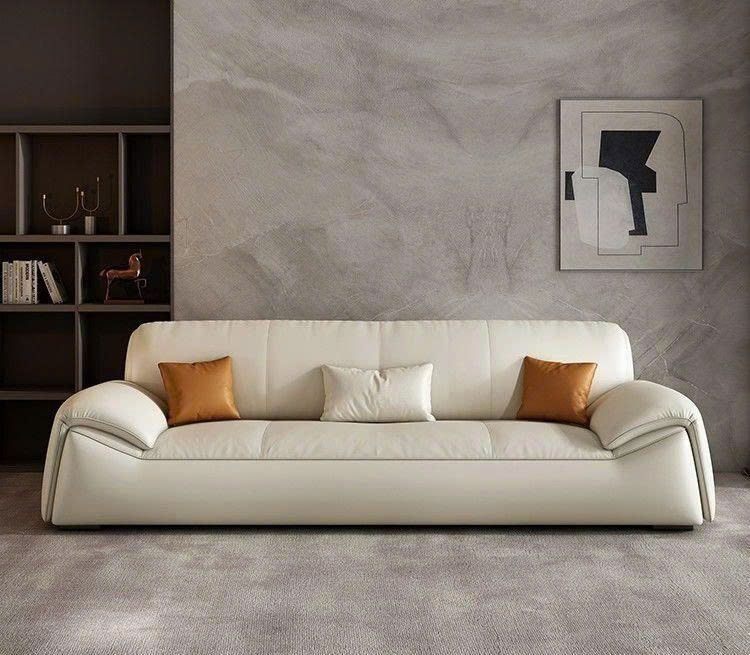 Chi tiết tay ghế tạo hình cong nhẹ, phối cùng mặt da mịn cho cảm giác cân bằng giữa tính thẩm mỹ và sự chắc chắn. Tông màu trung tính giúp tổng thể sofa trở nên sáng và dễ kết hợp trong nhiều không gian nội thất.