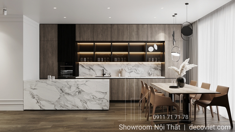 Là một không gian luôn ưu tiên cho sự tiện nghi, ấm cúng, hướng tới sự gọn gàng, sạch sẽ nên việc chọn các món đồ nội thất từ tủ bếp, bàn ghế ăn, tủ lưu trữ đến quầy bar đều được lựa chọn tỉ mỉ, chỉnh chu. Thi công nội thất phòng bếp vô cùng quan trọng, sẽ ảnh hưởng trực tiếp đến chất lượng cuộc sống của mỗi gia đình.