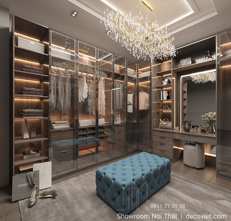 Dù là công trình thi công phụ, có thể không cần thiết trong một số không gian nhà ở thì sự bố trí nội thất của phòng thay đồ cũng góp phần hoàn thiện không gian chung của ngôi nhà. Thi công nội thất phòng thay đồ để lưu trữ, trưng bày quần áo, phụ kiện như túi xách, đồng hồ, trang sức, cavat,… không những giúp không gian phòng ngủ trở nên gọn gàng, ngăn nắp mà còn giúp bạn thuận tiện hơn trong việc tìm kiếm đồ đạc.