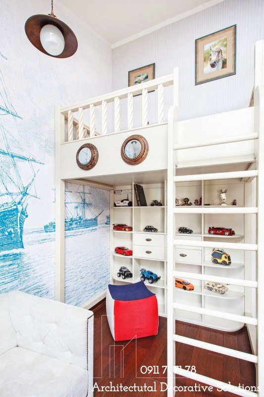 Một chiếc giường gác xép của trẻ em sẽ bổ sung thêm không gian lưu trữ và chơi đùa.